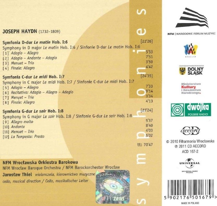 Druga płyta Wrocławskiej Orkiestry Barokowej z trzema znakomitymi i lekkimi w odbiorze symfoniami Josepha Haydna.