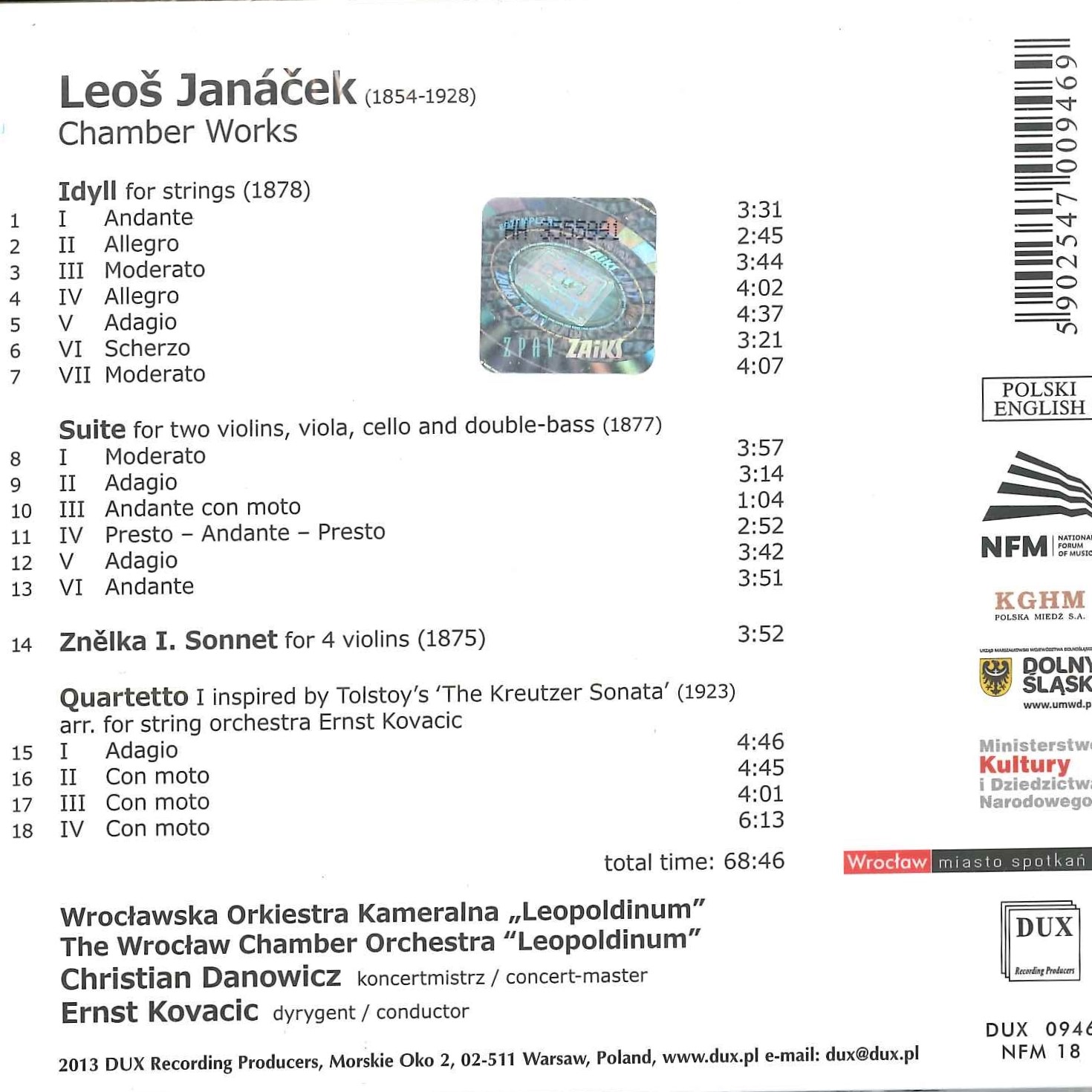 Monograficzna płyta prezentująca muzykę na orkiestrę smyczkową Leoša Janáčka. Album został nagrany w 2013 r. przez NFM Orkiestrę Leopoldinum pod dyrekcją jej ówczesnego szefa artystycznego, Ernsta Kovacica.