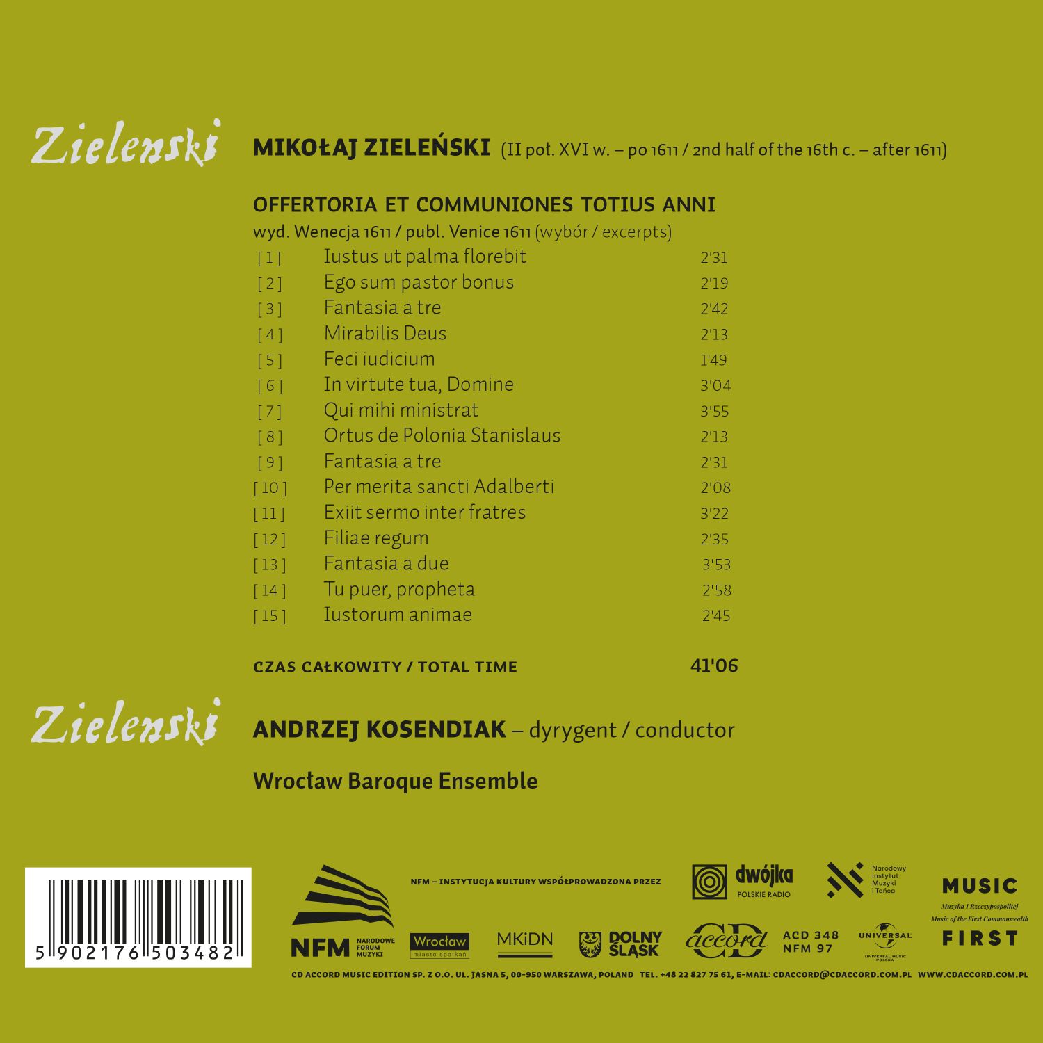 Zbiór ofertoriów i komunii Mikołaja Zieleńskiego, obejmujący 110 kompozycji, to bodaj najważniejszy wczesnobarokowy polski druk muzyczny. Po pierwsze, jest niezwykle obszerny – w przypadku rodzimej spuścizny muzycznej z XVII wieku to niespotykane, że aż tak wiele utworów jednego kompozytora zachowało się do czasów dzisiejszych. Po drugie, w moim przekonaniu to najbardziej znaczący pod względem artystycznym zbiór utworów polskiego twórcy okresu wczesnego baroku. To dzieło zasługujące na to, by było powszechnie znane i wykonywane. Dlatego właśnie kontynuujemy pracę nagraniową, czego efektem jest kolejna płyta z repertuarem pochodzącym z tego zbioru.