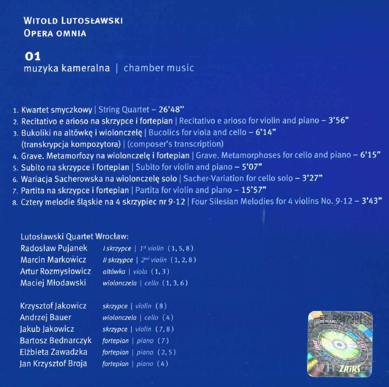 Wykonawcy: Radosław Pujanek, Marcin Markowicz, Artur Rozmysłowicz, Maciej Młodawski, Krzysztof Jakowicz, Jakub Jakowicz, Andrzej Bauer, Bartosz Bednarczyk, Elżbieta Zawadzka, Jan Krzysztof Broja, Lutosławski Quartet