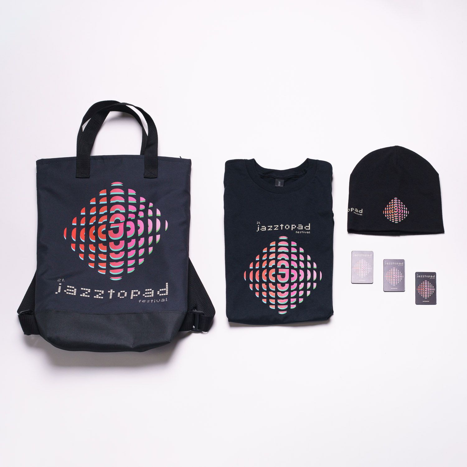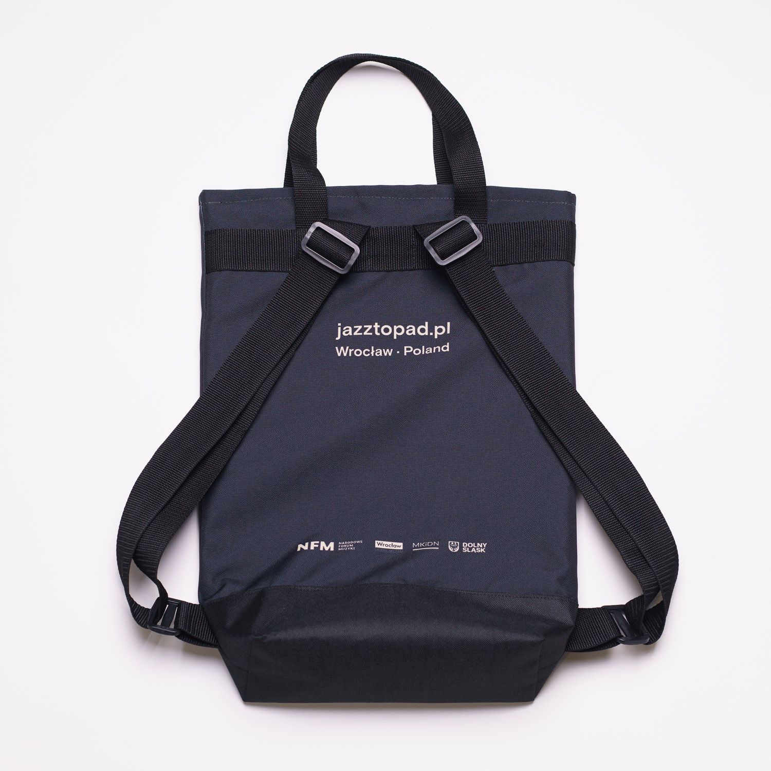 Wodoodporny, wytrzymały plecak z wizerunkiem 21. Jazztopad Festival autorstwa wrocławskiego grafika Wojtka Świerdzewskiego. Został wykonany z poliestru, a jego podszewka z nieprzemakalnej kodury. Zamykany jest na klamrę i ma dodatkowe zabezpieczenie od wewnątrz.